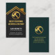 Eine goldene Dachdecke aus Imitaten markiert eine obere grüne Schicht gegenüber ihrem dunkelgrauen Gegenstück unten. Oben befindet sich ein goldenes Hammerlogo, gefolgt von Ihrem Prestigenamen, dem Jobtitel und den Kontaktdaten in der Nähe der Basis.