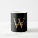 Modernes, weibliches, Minimalistisches, elegantes Schwarz-Gold Monogramm Initialname Weibliche Signatur Script Custom Personalisiert Coffee Tasse. Dieses minimalistisch schlichte Farbdesign mit Ihrem Vornamen in einer hübschen Hand geschwaschenen Schwanz-Schriftart Typografie (oder Kalligrafie), Monogramm Initialvorlage, leicht zu personalisieren. Große stilvolle feminine Hauswärmeschenke, auch zum Geburtstag, Muttertag, süße 16 Geburtstagsparty, Hochzeit, Brautparty, Babydusche, für Graduiertenfeier und Es ist für das Mädchen, das stilvolle Minimalprodukte Liebe.