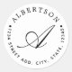 Individuell entworfene, runde Rücksendeadressen-Aufkleber/Aufkleber mit elegantem und klassischem Script Monogramm Design. Personalisieren Sie Ihre Daten mit dem Anfangsnamen, dem Familiennamen und der Adresse. Ideal zum Dekorieren von Umschlägen, Karten, DIY Geschenken und vielem mehr!