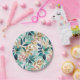 Mit diesen eleganten Tellern aus Papier bringen Sie Ihre Veranstaltung mit einer neuen botanischen Touch. Gemustert mit Blätter in Aqua, aquamarin, Rosa und Imitat Gold, die Teller sind hübsch und praktisch.