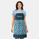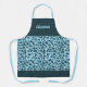 Trendige feminine Schürze mit einem hellblauen Leopardenfleckmuster; anpassbar durch hellblaue Schriftzeichen am Streifen am oberen Teil