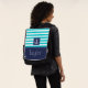 Nautischer Rucksack mit türkisfarbenem und marineblau gestreiftem Muster und anpassbarem Text.