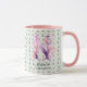 Feiern Sie die Verschmelzung von abstrakter Kunst und boho chic Stil mit unserer personalisierten blumigen Monogramm-Tasse mit dem Buchstaben 'N'. Diese wunderschön gestaltete Tasse kann mit Ihrem Namen, wie z.B. "Natalie Nelson", individuell gestaltet werden, was sie perfekt für Brautpartys, Geburtstage, besondere Anlass oder eine Touch personalisierter Eleganz in Ihren Kaffeealltag macht. Genießen Sie eine einzigartige Tasse, die Gnade und Individualität verkörpert.