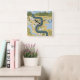 Stilvolle Cartoon Landschaft Reiseplan Quadratische Wanduhr