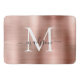 Elegante Chic Girly Rose Gold Brushed Metal Stainless Steel Monogram Script Bath Mat