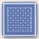 Ein Set von sehr stilvollen Cork-Backed-Untersetzer oder Tischmatten in dunklem (Monaco) Blau mit weißen Polka-Punkten und Streifen.