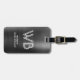 Eleganter Chic Stilvolle Zwei Monogramm Initial Name Black Metal Custom Personalisiert Luggage Bag Tag. Dieses Design mit Vollnamentypografie mit 2 Monogramm Initial (in doppelzeiliger Schrift Schriftart Stil), Adresse Infos über Imitate schwarz metallische Folie Hintergrund. Diese sind einfach zu anpassen. Stilvolle feminine oder männliche Geschenke für Hochzeit, süße 16 Geburtstag, Abschluss, Brautparty und für alle, die Lieben eleganten Stil.