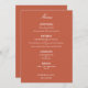 Stilvolles Terracotta Wedding Menu, bitte personalisieren Sie Ihre Wünsche mit der Online Personalization Vorlage, bevor Sie bestellen. Wenn Sie Ihre Formulierung in die Personalisierungsvorlage eingegeben haben, sollten Sie feststellen, dass Sie die Positionierung des Textes anpassen müssen, dann verwenden Sie bitte die Option "Bearbeiten mit dem Design-Tool" (die Schaltfläche ist durch Scrollen in der Personalisierungsvorlage verfügbar).