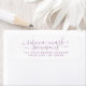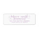 Erstellen Sie Ihre eigenen Einladungen für Hochzeiten mit dieser stilvollen Chic Script-Rücksendeadresse-Vorlage. Die Rücksendeadresse simple label in niedlich lavender liliac lila typo bietet einige namen und nachnamen in handgeschriebenem kalligraphie modernen Schriftart und Ihre eigene Rücksendeadresse in klassisch und raffiniert Serif Schriftart. Dieses saubere und minimalistische Retourenlabel ist perfekt für rspv, Hochzeitseinladungen, Brautparty, Save the Date und all Ihre besondere Anlässe.