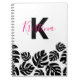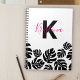 Dieses elegante und moderne Notebook verbindet auf wunderschöne Weise Personalisierung mit Stil. Das Cover ist mit einem großen, kühnen, schwarzen Buchstaben "K" geschmückt und mit dem Namen "Kristina" in einem eleganten, kursiven Schriftart in einer auffallenden rosa Farbe überlagert. Diese persönliche Touch verleiht dem Notizbuch einen einzigartigen Charme und macht es zu einem idealen Geschenk für einen ganz besonderen oder stilvollen Begleiter Ihrer eigenen Schreibwarensammlung. Die untere Hälfte des Covers ist mit einer Reihe von Silhouetten aus schwarzem Monstera-Blatt dekoriert und bietet eine trendige und Bio Ästhetik. Die Monstera-Blätter, bekannt für ihre unverwechselbare Form, fügen dem Design eine Touch der Natur hinzu und fühlen sich dadurch frisch und lebendig. Der weiße Hintergrund bietet eine saubere und minimalistische Leinwand, die die anderen Elemente zum Pop macht und einen visuell ansprechenden Kontrast schafft. Dieser Kontrast erhöht die Lesbarkeit des Textes und die Sichtbarkeit der Designelemente, wodurch diese sich herausstellen.