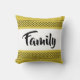 Du wirst dieses niedliche Kissen Liebe! Gelber/goldener Hintergrund mit lustigen schwarzen Mustern oben und unten. Weiß ist in der Mitte mit dem Wort Familie in einer lustigen und hübschen Typografie. Spaß und stilvoll!