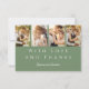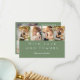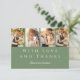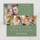 Moderne Foto Strip Simple Sage Wedding Dankeschön Card - Eine schicke und raffinierte Art, Ihre Dankbarkeit auszudrücken. Diese Dankeschön-Karte verfügt über einen Vierer-Foto-Streifen auf der Vorderseite und ein Foto auf der Rückseite, für insgesamt fünf Fotos. Ideal für Paare, die ein herzliches und stilvolles Dankeschön an ihre Lieben schicken möchten. Das Design verbindet eleganten weißen Blocktext mit anmutiger Skriptkalligraphie auf einem weichen, erdigen weise grünen Hintergrund und schafft eine zeitlose und raffinierte Ästhetik. Personalisieren Sie diese Karte, indem Sie Ihre eigenen fünf Fotos hinzufügen und die Nachricht an Ihren individuellen Stil anpassen.