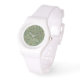 Der Hauptteil dieser Uhrenoberfläche zeigt ein detailliertes nahes Foto der grünen Gesteinsstruktur. Es gibt 5 Farbvarianten. Ein glänzender, weißer Kreis aus Metall umschließt das Mittelbild. Diese Version enthält keine Ziffern, da sie bereits auf der Uhr Details. Weitere Versionen von KreaturRock.