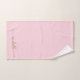 Eleganter Chic Moderne Gold Monogram Name Signature Script Custom Personalisiert Blush Pink Bath Handtuch Set. Dieses zarte Design mit individuelle Name in einer kursiven Hand gezeichnet Swash Schwanz Schriftart Kalligraphie (oder Typografie) in Gold auf rot rosa oder Baby rosa Hintergrund. Große stilvolle feminine Hauswärmeschenke, auch für Geburtstag, Hochzeit, Brautparty, süße 16 Geburtstagsparty, Muttertag, Junggeselinnen-Abschied, Jubiläumsgeschenk und für Graduiertenfeier. Es ist für das Mädchen, das stilvolle Eleganz liebt.