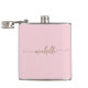 Elegante Minimalistische, moderne Gold Monogram Name Script Signature Custom Personalisiert Blush Pink Flask. Mit Vornamen in hübscher Handschrift Swash Schwanz Schriftart Kalligraphie (oder Typografie) in Gold auf rot-rosa oder Baby-rosa Hintergrund. Diese sind einfach zu anpassen. Großartiges feminines Junggeselinnen-Abschied Geschenk, Hauswärmespiele, auch für Junggeselinnen-Abschied, Geburtstag, Muttertag, süße 16 Geburtstagsfeier, Hochzeit, Brautparty Party, für Graduiertenfeier und Es ist für das Mädchen, das Lieben einzigartige stilvolle Sachen.