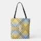 Stilvolle Golden Stripe Monogram Name Kariert Wedding Tote Bag Moderne, stilvolle und trendige, anpassbare Tasche mit "personalisiertes Monogramm & Name" auf einem goldenen Abzeichen / Streifen und Baby blau / gelb kariert tartan Hintergrund. Personalisieren Sie diese schöne Tasche als ein wunderbares Geschenk für eine Braut, Brautjungfrau, Lehrerin, Freundin oder ein Mitglied Ihrer Familie, indem Sie Ihren Namen oder Text / ändern Sie den Schriftart, Farbe, Größe und Position.