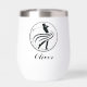 Personalisierter Weinkeller mit einer dynamischen Silhouette eines Golfers im Mittelschwung, Bewegung und Energie mit einem Golfballhintergrund.