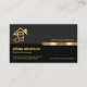 Ein Retro-Design aus grauen und schwarzen Schichten wird durch einen goldenen Streifen aus Imitat in der Nähe der rechten Kartenseite abgegrenzt. Dieses goldene Streifen Erfolg zu reiten ist Ihr Firmenname mit einem kreativen goldenen "letter-e" Logo, das Sie in die entgegengesetzte Richtung verwenden können. Der Buchstabe e kann "Elektriker" oder möglicherweise Ihren Firmennamen darstellen. In der schwarzen Ebene unten finden Sie Ihren prestigeträchtigen Namen, den Jobtitel und die Kontaktdaten. Gegen Ende ist ein Slogan für Sie, um Ihre Dienste zu veröffentlichen. Auf der Rückseite, in einem dunkelgrauen Cover, befindet sich das goldene Logo oben, gefolgt von den Kontaktdetails und einem Slogan. Eine berufliche Karte für alle, die besonders elektrische Themen verwenden. #electrician #electrical #electricalservices #electricalreparatur #lighting #lighting #electriengineering #electricalengineer #electricaltragner #electricer #electricaltragner #zazzlemade