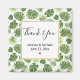 Danke Magnet mit einem hübschen Muster aus grünen tropischen Blätter. Exotisches Design. Ein weißes Quadrat mit einem goldenen Imitat-Folienabrand, der oben mit dem Text im Inneren platziert ist.