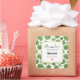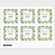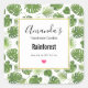 Aufkleber für Kerzen oder Seifen mit einem hübschen Muster aus grünen tropischen Blätter. Exotisches Design. Ein weißes Quadrat mit einem goldenen Imitat-Folienabrand, der oben mit dem Text im Inneren platziert ist.