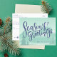 Stilvolle Grünen Jahreszeiten Grüße Personalisierte Urlaubskarte Eine abstrakte künstlerische Winterszene mit stilvollen "Season's Greetings" handgeschriebenen Drehbuch personalisiert Weihnachts-Postkarte.