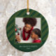 Dieses elegante, grüne Urlaubsornament besticht durch ein gerahmtes Foto im Zentrum und den personalisierten Namen und das Jahr in einfacher Typografie. Dieses trendige Ornament besticht durch die Farbtöne eines geometrisch grünen Streifenmusters auf einem modernen, schlicht dunkelgrünen Hintergrund. Bestellen Sie diese stilvolle saisonale Kollektion für zusätzliche Farboptionen und koordinieren Sie Weihnachtskarten.