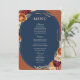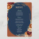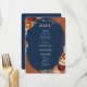 Stilvolle moderne Herbst Orangenmarinette Blumenmenü. Entspannen Sie in der Hochzeitsfeier mit diesem stilvollen, modernen Hochzeitsmenü, das eine raffinierte Mischung aus warmen Orangen- und tiefen Marineflocken bietet. Diese Karte ist perfekt für eine elegante Herbstfeier. Sie zeigt Ihre sorgfältig gepflegten Details und verleiht Ihrem Tisch eine Touch saisonalen Charmes. Eine schicke und zeitlose Ergänzung zu Ihrem Hochzeitsdekor!