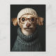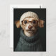 Ein niedlicher Hund mit Brille, eine Strick-Mütze und ein Rollkragenpullover, der ein scholares und modisches Ambiente ausstrahlt.