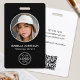 Beeindrucken Sie mit einem stilvollen und beruflichen Identifizierungs-Abzeichen. Diese zweiseitige Vorlage enthält Ihr ID-Foto in einem Kreis und ist mit einem Namen, Logo, Kontaktinformationen und einem scannbaren QR-Code personalisiert. Passen Sie den Text an Ihre Marke an. Dieses moderne Design würde viele verschiedene Arbeitsplätze und Berufe Anzug, einschließlich Unternehmen, Einzelhändler, Schönheitsberater, Hotelpersonal, kleine Unternehmen, Tagungsnamen und mehr! Druckfarben: Schwarz/Weiß.