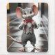 Eine charmante, animierte Maus steht sicher, gekleidet in einer eleganten grauen Weste und Hose, betont durch einen Polka Dot Bowtie und Aufhänger