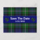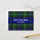 Stilvolle Hochzeit speichern Sie das Datum Postkarte im traditionellen Forbes grünen und blauen tartan karierten Hintergrund getan. Eine blaue Band verläuft in der Mitte der Karte, die mit zwei karierten Herzen auf beiden Seiten des weißen Textes geschmückt ist. Der gesamte Text auf der Vorder- und Rückseite der Karte ist vollständig anpassbar, um zu lesen, was Sie gewollt haben.
