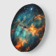 Stilvolle kosmische Galaxieuhr. Strikte Wandkunst Uhren in verschiedenen Formen und Größen. Eine wunderschöne Welt inmitten der Sterne mit coolen grünen Blautönen und einem warmen Pop mit lebhaften Gelb- und Orangetönen.