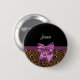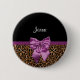 Bleibe in Mode mit diesem stilvollen braunen Pelzleopardendruckknopf mit einem eleganten lila Band, das in einen schicken Bogen gebunden ist. Personalisieren Sie dieses moderne und elegante Design von Tierdrucken, indem Sie Ihren Namen hinzufügen. Flachbild, nicht echtes Fell oder Band.