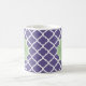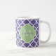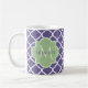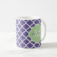 Eine stilvolle, staubige, lila Quarrefolien gemusterte Tasse mit einem geschmolzenen Abzeichen in weichem Grün, das Sie personalisieren können, indem Sie Ihren Namen und mit Monogramm erste zu. Dies ist Teil der Ultra Violet und Nile Green Spring Kollektion.