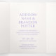 Elegante Hochzeitsdreifach-Einladung mit klassischem Design und einem einfachen Layout. Ihre Namen und Ihr Hochzeitstermin werden in einem großen Schriftart mit traditioneller Serifenschrift sichtbar angezeigt. Die Einfachheit dieses Designs ist ideal für eine formelle Hochzeit.