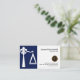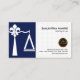 Ein Entwurf mit der Karte abgegrenzt in zwei Abschnitte. Die links blaue Spalte hat die Skalen des Gerechtigkeitsentwurfs hergestellt von der Lilie. Die weiße Abdeckung auf dem Recht hat eine zugrunde liegende Gerechtigkeit des Skalamusters; Liegt hier Ihr prestigevoller Name und Stellenbezeichnung an der Spitze. Nahe der Basis ist ein Goldlogo, das Sie neben den Kontaktdetails verwenden können.
