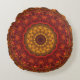 Ein hübsches rundes Kissen mit einem gemusterten Design im Stil der Mandala, in kräftigen Herbstfarben rot/orange und goldgelb, ein sehr luxuriöses, elegantes Zuhause-Accessoire.
