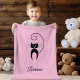 Die weiche, gemütliche Decke zeigt eine Silhouette einer schwarzen Katze, stehend mit dem kurbelnden Schwanz über dem Kopf der Katze. Personalisieren und anpassen Sie den unten angezeigten Namen in einem eleganten Script-Schriftart. Ändern Sie die Standardfarbe für rosa Hintergrundfarbe. Niedliche, stilvolle, moderne und coole Katzen für Katzenliebhaber, Tierfreunde, Tierärzte, Neugeborene, Kinder und neue Mütter. Macht ein großartiges Geschenk.