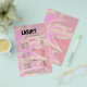 Herrliche Lashes & Brows Preisliste mit bunten Imitaten holografischer Textur und elegantem Kalligraphie-Schriftart.