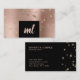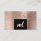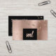 Elegante Visitenkarten sind mit Imitaten aus goldenen Konfetti-Punkten, goldener Hintergrundtextur aus Kupfer-Rose, Initialen und Kontaktinformationen ausgestattet.
