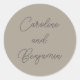 Stilvolle moderne Script Wedding Names Taupe Gray Classic Round Sticker