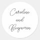 Stilvolle moderne Script-Wedding Names Classic Round Sticker mit weißem Hintergrund