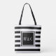 Stilvolle, personalisierte Initialen mit Monogramm-Tasche mit schwarz-weiß gestreiftem Muster mit Ihren Initialen. Entwickelt von Thisisnotme©
