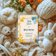 Mit dieser einzigartigen Einladung laden Sie Ihre Lieben zu einer stilvollen und lebendigen Babydusche ein. Freuen Sie sich auf eine mutige Kombination aus Senfgelb und Schieferblau. Das Design umfasst charmante Tierdarstellungen mit zarten Aquarellakzenten auf einem weichen cremefarbenen Hintergrund und schafft eine elegante und spielerische Atmosphäre. Diese Einladung eignet sich perfekt für eine moderne oder geschlechtsneutrale Babydusche und bietet viel Platz für personalisierte Details. Sie eignet sich hervorragend für eine unvergessliche Feier