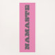 Einfache, stilvolle rosa und weiche graue Yoga-Matte, die mit dem Wort NAMASTE bedruckt wurde.