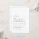 Diese moderne Hochzeitseinladung ist einfach und stilvoll, mit einer einzigartigen Buchstabenkombination handgeschriebener Schrift und eleganter Serif für die Namen von Braut und Bräutigam. Der gesamte Text ist für einen eleganten, zeitgenössischen Look links-gerechtfertigt und fühlt sich mit Text in beliebter Groß-Schrift. Die Rückseite der Einladung enthält die Details und UAWG mit einem QR-Code, um Ihre Hochzeitswebsite für die Gäste zu scannen ihre Antworten. Dieses gepflegte klassische Aussehen mit den stilvollen Details des Brautennamens fügt diesen besonderen Pop des Stils hinzu, wobei die Einfachheit eines minimalistischen Designs gewahrt bleibt. Viel weißer Raum auf der Einladung bietet eine saubere, gepflegte Präsentation. Das Styling der Braut- und Bräutigam-Namen kreiert Ihr persönliches Hochzeitslogo, das Sie auf anderen passenden Schreibwaren und Produkten dieser Suite verwenden können. Wenn Sie Textzeilen neu ordnen möchten, wählen Sie "klicken, um weiter anzupassen", um den Volltexteditor zu öffnen, in dem Sie den Text nach Belieben anklicken und verschieben können.