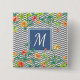 Ein Zickzack, stylischer, grau gehaltener Musterknopf mit hübsch orangefarbenem Blumenmuster. Persönlich gestalten, indem Sie Ihre Initialen zu diesem chic blauen mit Monogramm Quadrat hinzufügen.