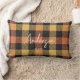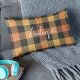 Stilvolles, kariertes Akzent Kissen in Herbstfarben, orange, gelb und schwarz. Das Design umfasst ein Tweed-Muster überlappender Schichten, die die einzelnen Grundfarben miteinander verbinden, und eine leichte grafische Textur, um ein weicheres Flanell wie, Look zu schaffen. Große, zentrierte Textzeile in einer kalligrafischen Schriftzeiche für Familienname oder kurze Stimmung (z.B. "Danke", "Happy Holidays"). Eine sekundäre Textzeile in einer minimalistischen Sans Serif-Schrift unten für Datumsangaben, Namen usw. (verlass leer, um zu entfernen). Nur Rückseite des Kissens karierte Muster. Schönes Dekorations-Accessoire, das für den Alltag oder den besondere Anlass personalisiert werden kann.