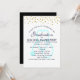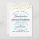 Eine Einladung für eine Pflege Abschluss Feier. Entworfen mit Imitaten goldenen Konfetti Punkte entlang der Spitze. Ein pastellblaues Stethoskop hinter dem Party. Das einfache minimalistische Design.