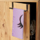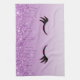 Ein Küchentuch in trendigem Design. Der Hintergrund ist eine lila Farbskala mit einem Fake, das von oben nach unten glänzt. Ein Paar von gürtelig niedlichen Wimpern unter dem Glitzer-Bild.